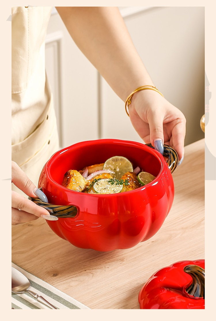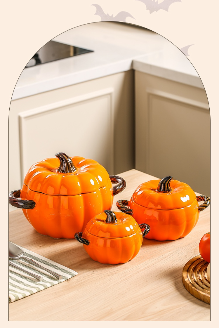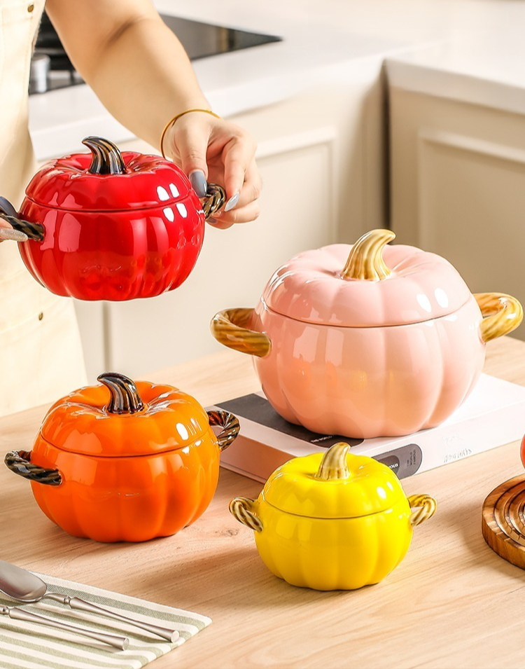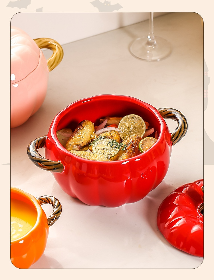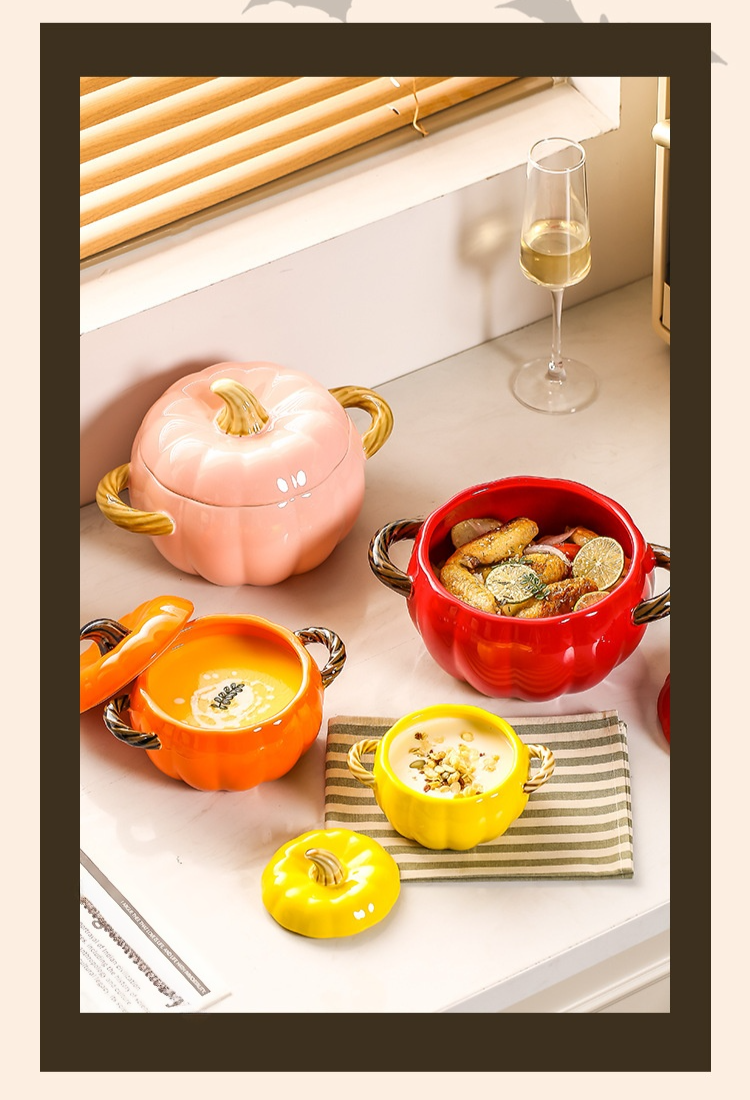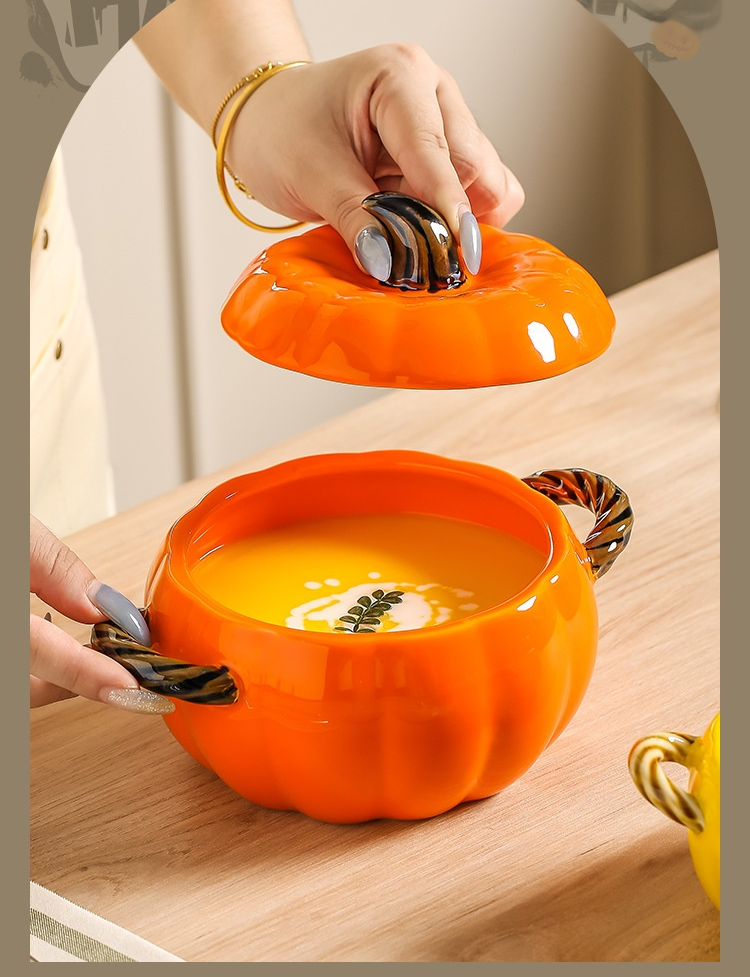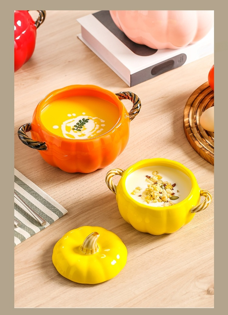 陶磁器両耳カボチャスープボウル